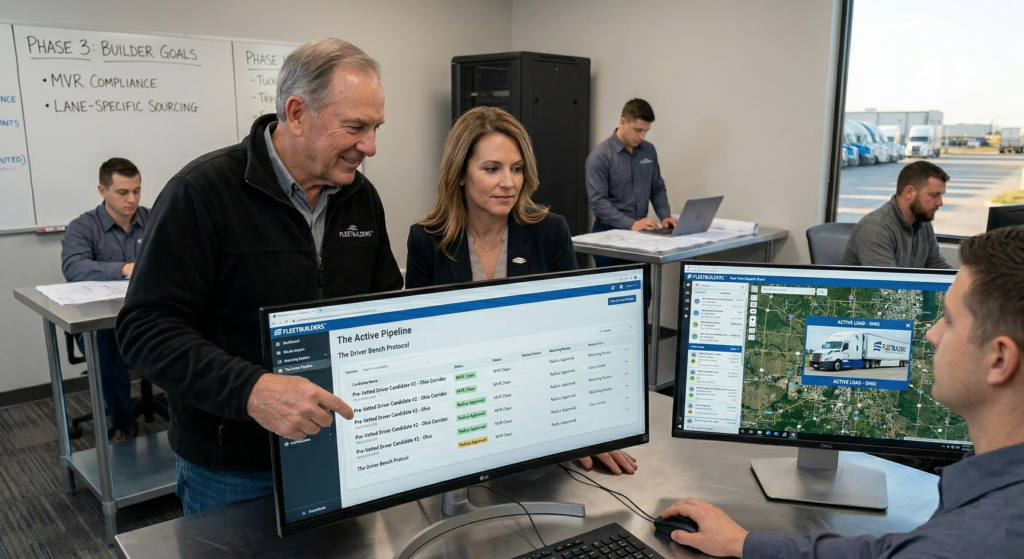 In Phase 03, we install the Driver Bench. This means you are always “sourcing” talent. You should have 2 or 3 pre-vetted drivers on a “warm list.” You talk to them once a week. You let them know you have a seat coming up. When a driver leaves on Monday, your new driver is behind the wheel by Tuesday morning. The wheels never stop. The revenue never dips. This is how the big carriers stay big—they never stop recruiting.